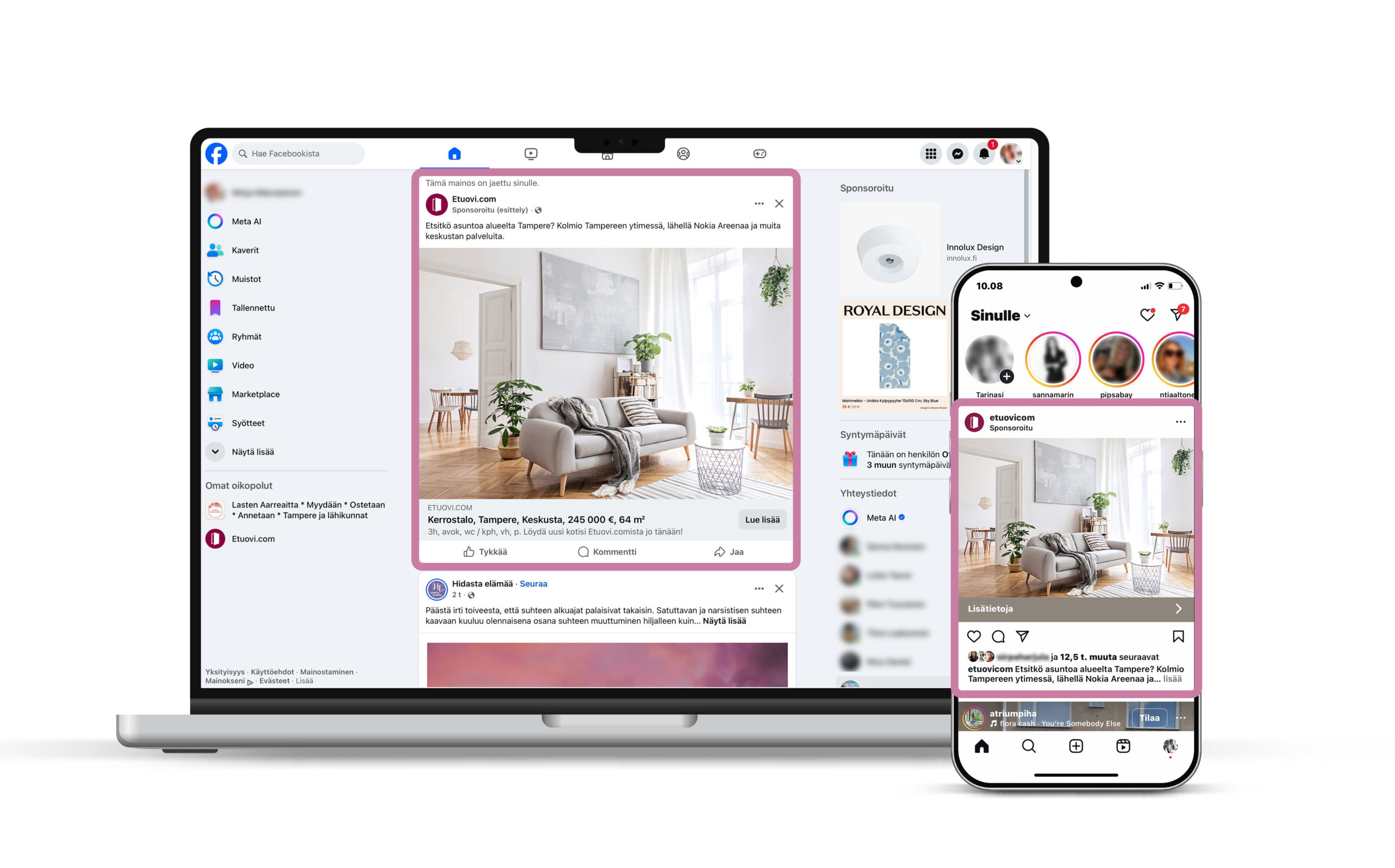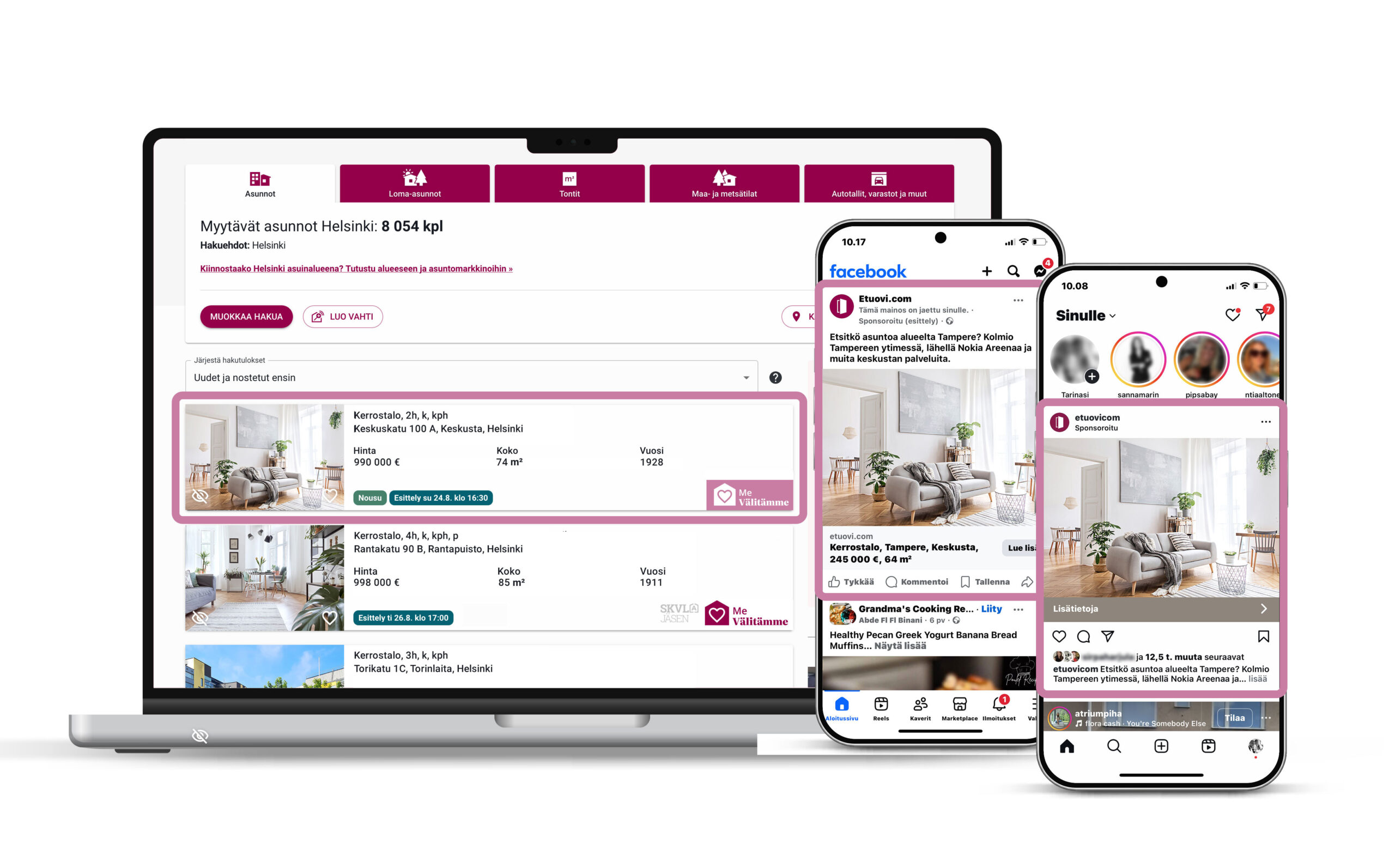 72 h kuluessa julkaisusta – maksimoi kiinnostus Etuovi.comin uniikilla kohdennuksella somessa