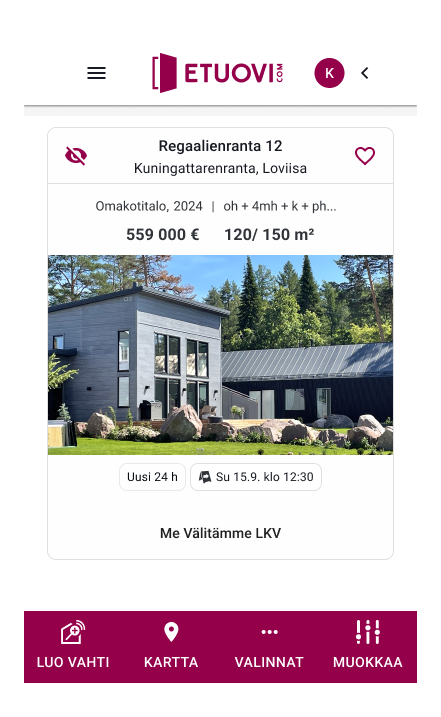 sijaintia Etuovi.comin hakutuloslistalla ja tavoita myös vahtiviestillä